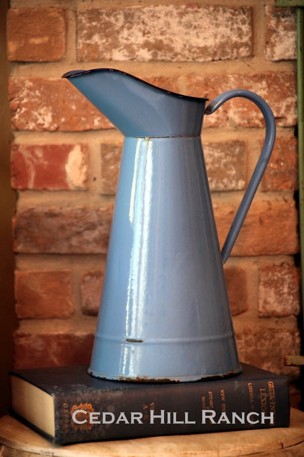 Since I changed this room from red to white, I knew that I could bring in my blue French enamelware pitcher too.