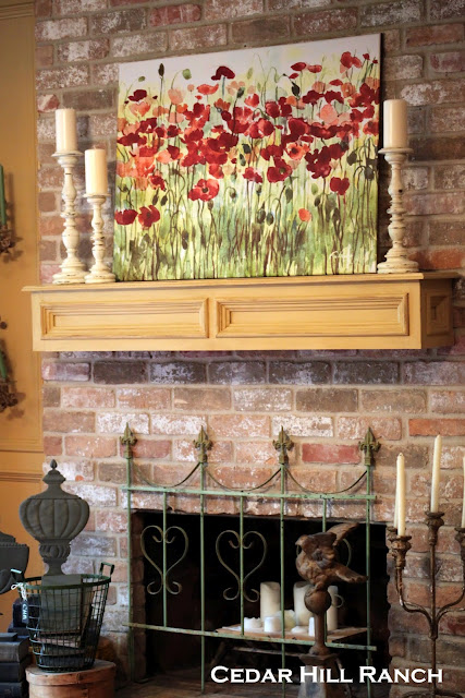 I like them just as you have them propped against your fireplace. The whole vignette looks just wonderful with all your vintage items decorating that corner of your home.
