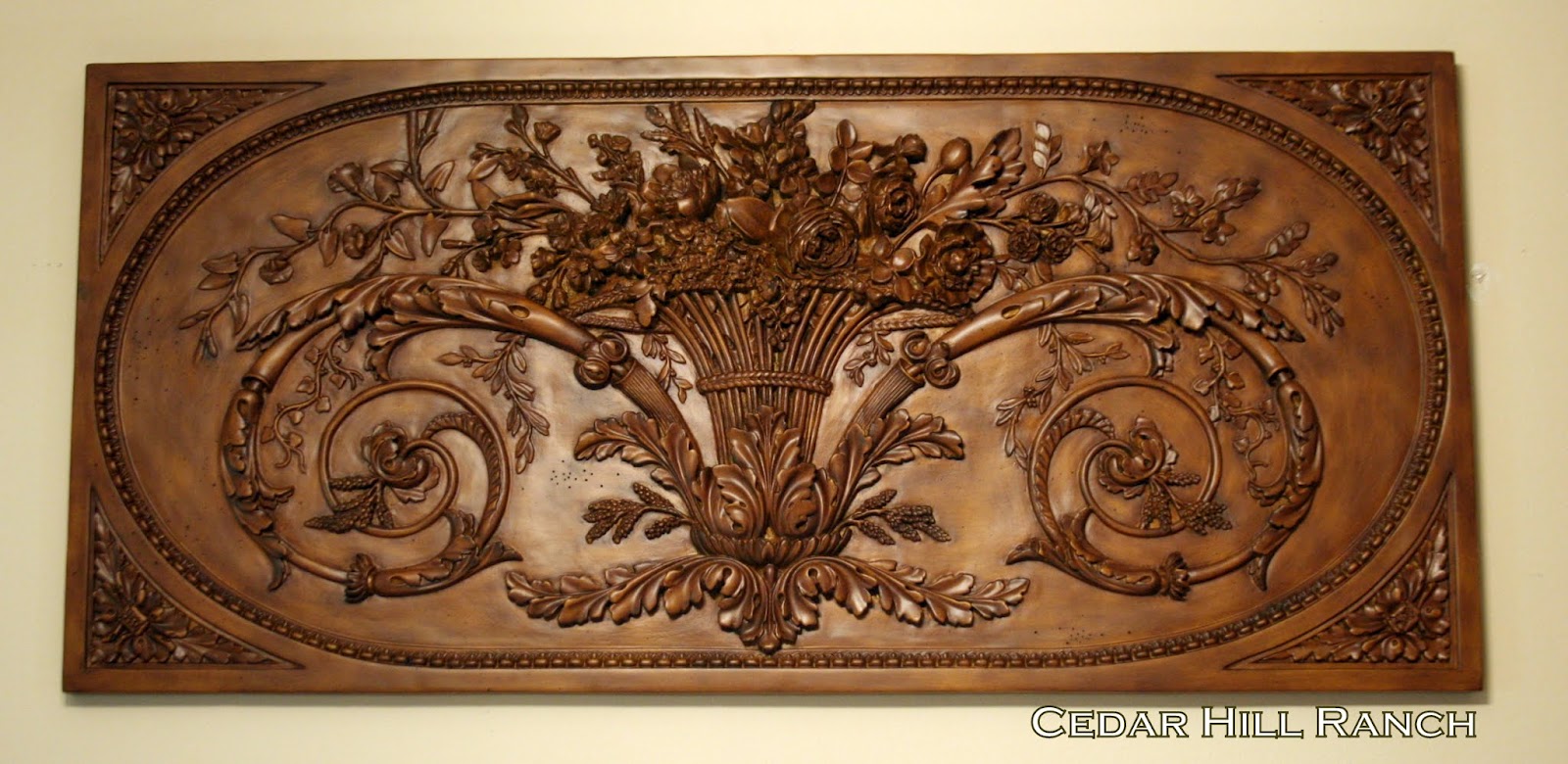 This is a difficult space to work with, since most artwork isn’t wide enough to look good above a bed.  I found exactly what I was looking for – a detailed relief of a Parisian Architectural find from Ballard Designs.