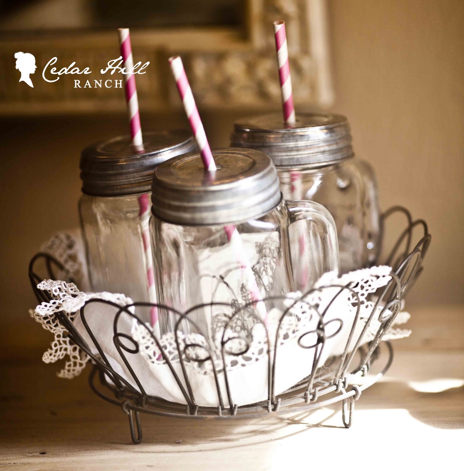 I love using Mason jars for glasses when we have parties. In fact, I think I have about 60 Mason jars. We used them for our wildflower party last year, click here, and the lids make the Mason jars even more fun for parties.