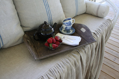 Thanks so much for stopping by oneshabbychick! I love love love your daybed makeover! You did a fantastic job. I love the slipcover and how the ruffle starts before the edge, and the fringe. Nice touch. And the grain sack pillows are beautiful.
