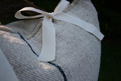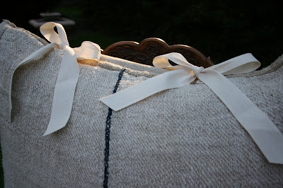 I did a very simple enclosure on my pillows, using ribbon similar to what I saw on Miss Mustard Seed’s header, click here.