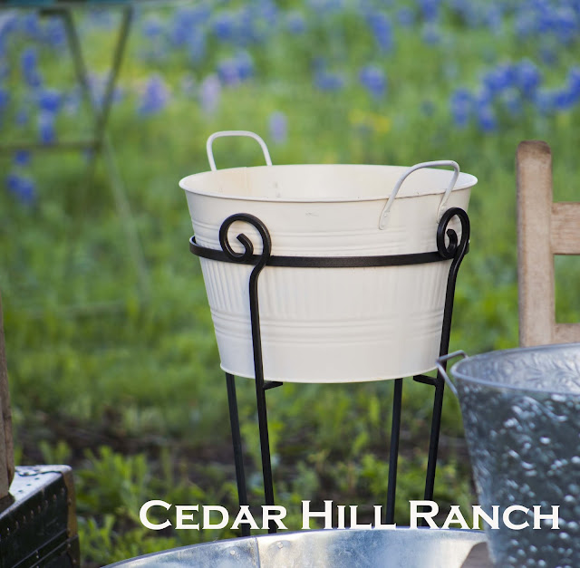 What do you think of these bluebonnets? Okay, they aren’t technically bluebonnets, but they are metal flowers on wooden sticks, another gift from my friend, Becky. They were made by The Round Top Collection.