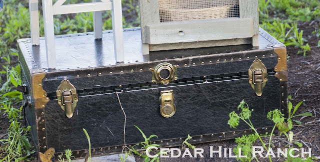 The pie safe was sitting on this trunk. Do you remember this trunk? It is the very same trunk my in-laws used when they traveled to Switzerland in 1959, you can see more here.