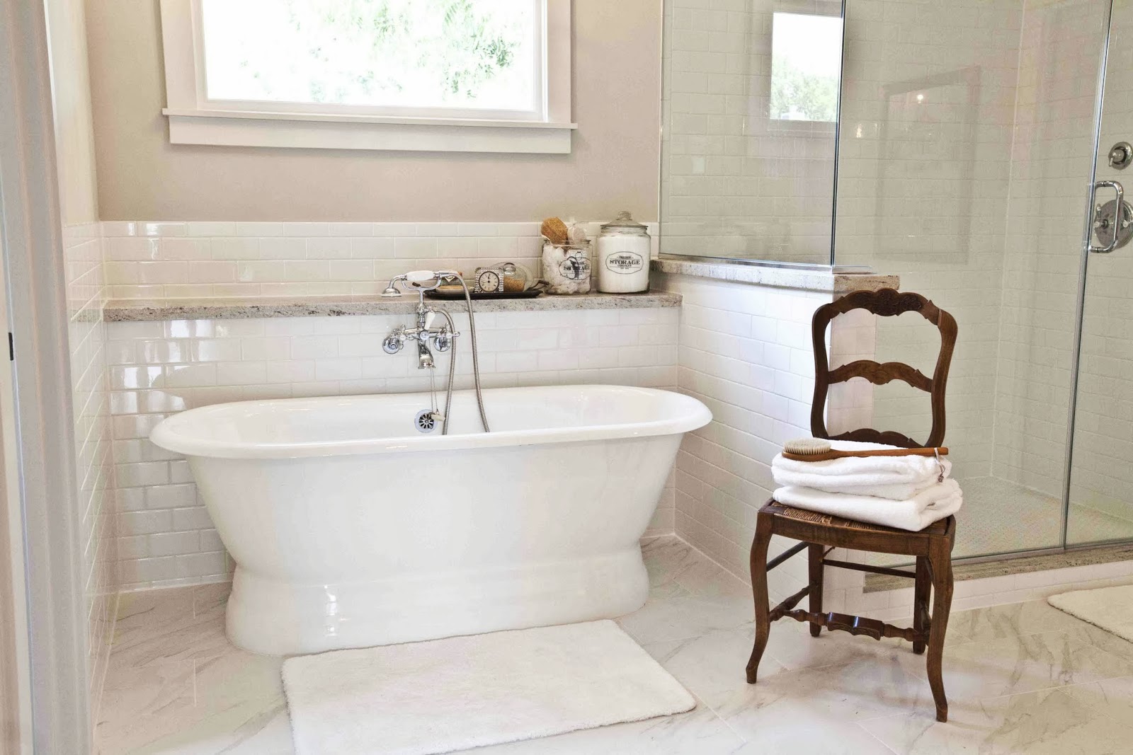 I soooo love your style! I love that the chair by the tub is a warm wood tone rather than a painted cream or white chair. You have that touch! Have a great day! Beautiful today here in Denver but calling for rain/snow on Friday 🙁 waaaaaaaa!