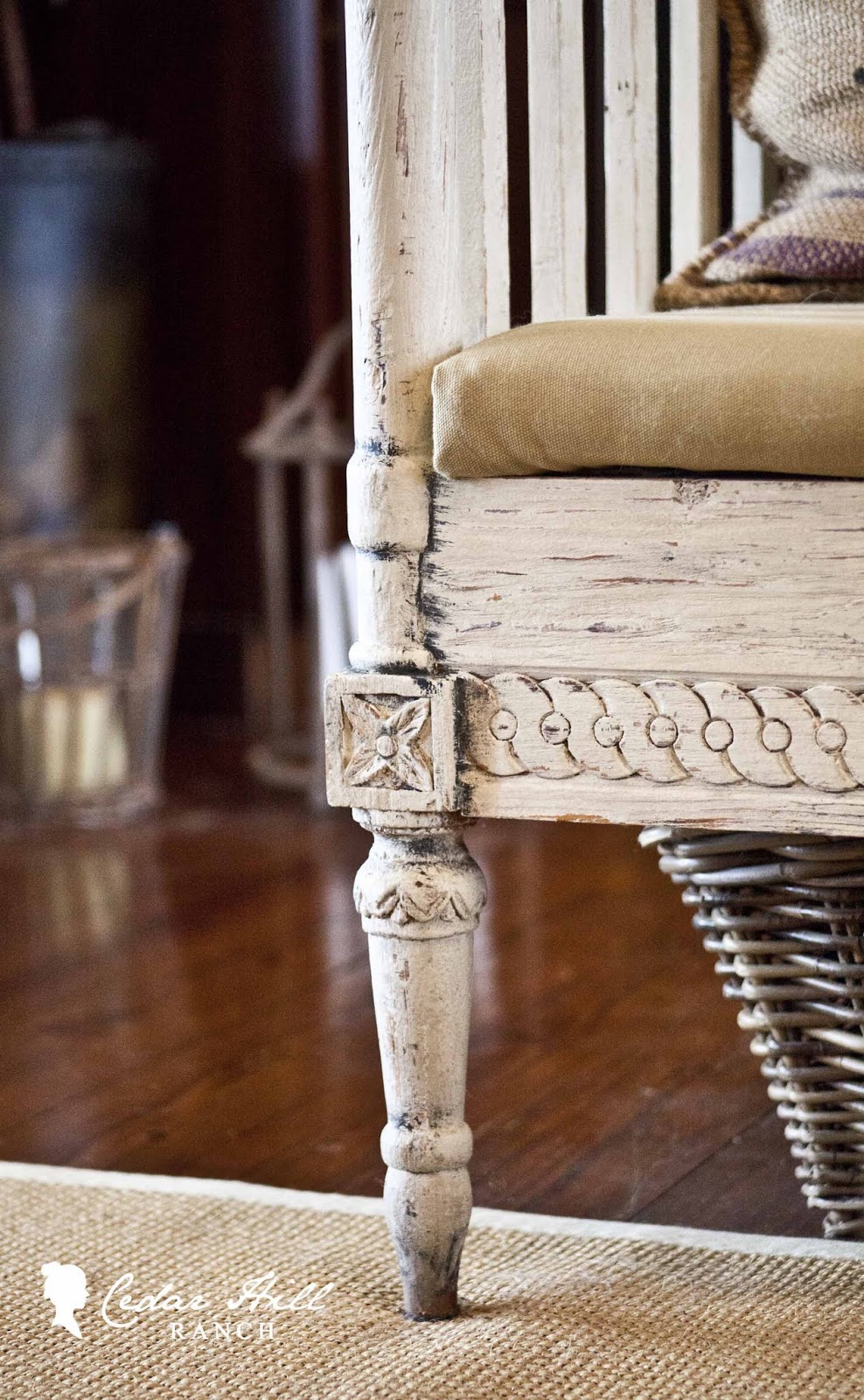 Great mix of textures in the room! Our floors and furniture are antiqued by our dogs, too.