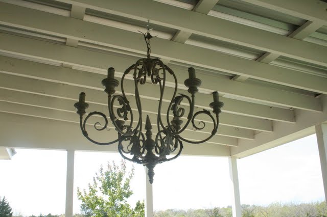 OH that is a beautiful chandelier!! I had the same issue with several I made over — I used epoxy and glued metal washers over the screws, stacking them until I got a flat surface and then spray painted them the same color as the chandelier. Like minds 🙂 Your porch is just lovely!
