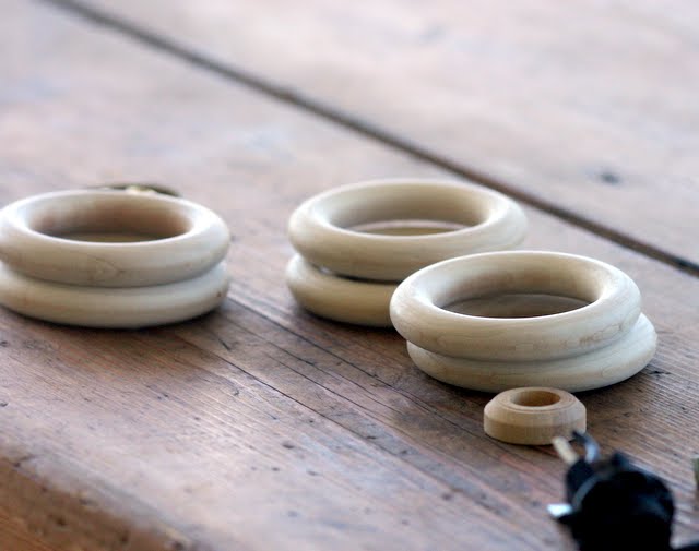 I found these wood curtain rod rings that I thought might work.