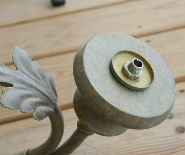 I thought I would convert the chandy to use with candles down at our new creekside deck.