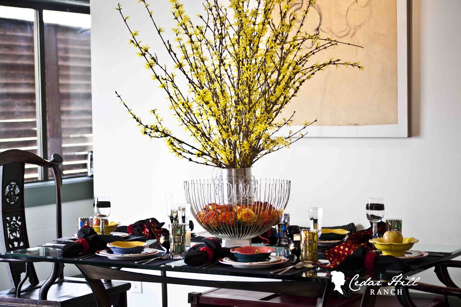 How beautiful with some nice modern touches! I just love that big round dining table.
