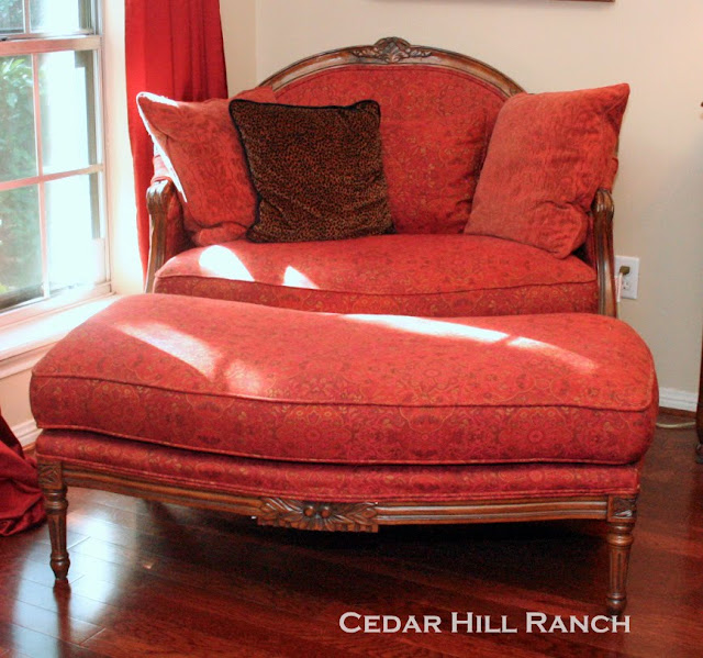 Here’s what my settee and ottoman looked like before.