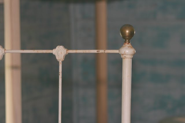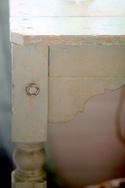 Out that door to the left is a balcony, where I saw this fun, chippy table.