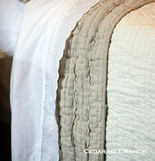 Gorgeous linens, Anita. That is so nice that you found a new sheet from your mil. Love the trim on it.