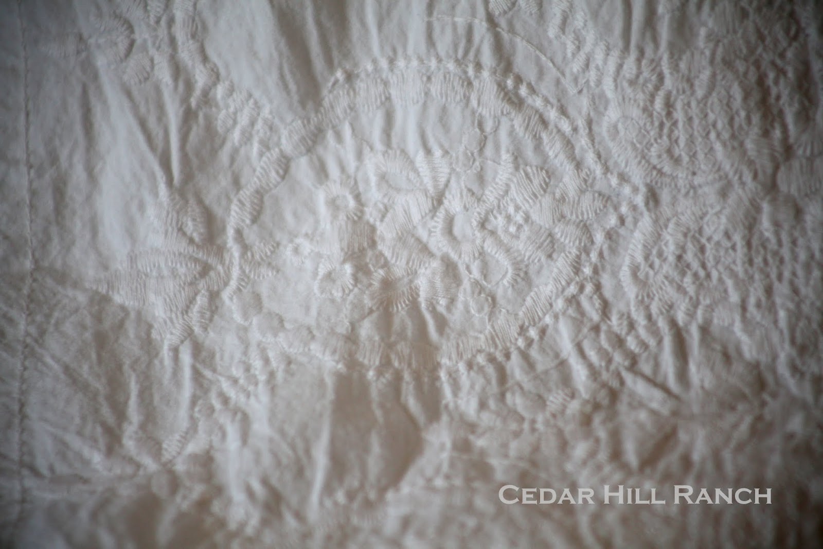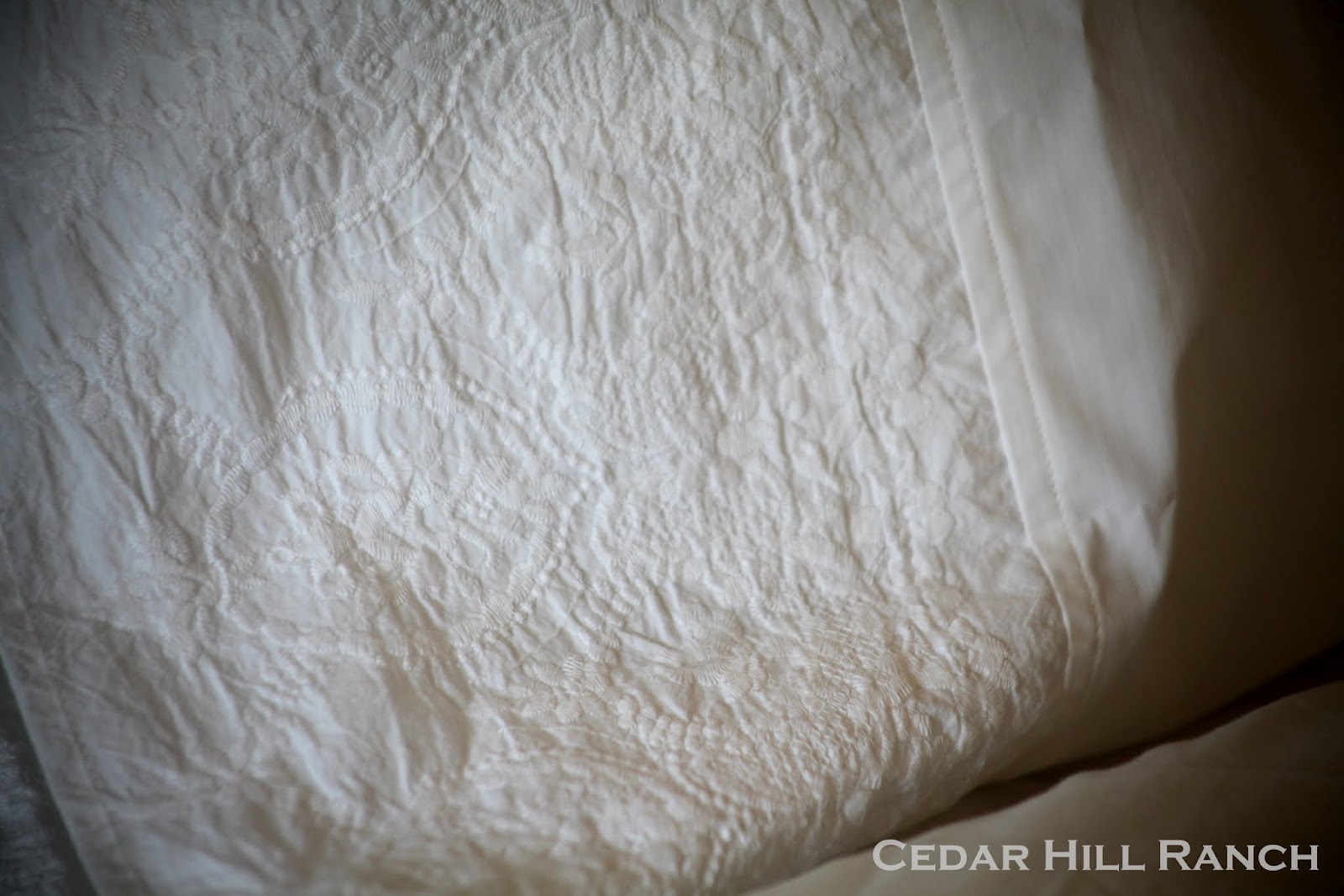 Although it was difficult to photograph the details on the pillows, since it is white on white, I made an attempt, just for you my darlings.
