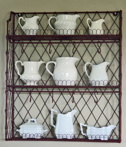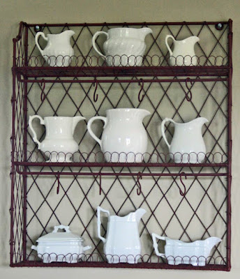 But look at it.  Isn’t it beautiful?  I just wanted the shelf and wasn’t even looking at the white ironstone.  She had mentioned that she wanted to get rid of it, but when I said I wanted to buy it, she decided that maybe she should keep it.  Hmmm… The more I thought about her shelf, the more I thought that I liked the ironstone too.  I bought a piece at Leftovers (click here) and fell in love with white ironstone.  I loved the look so much, that I bought some more on eBay, click here.