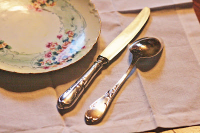 The French spoon and knife below are shown next to a hand-painted French plate.