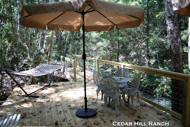 So we decided to build another deck in the woods by the creek. The builder is supposed to add a cross here, but it hasn’t happened yet.