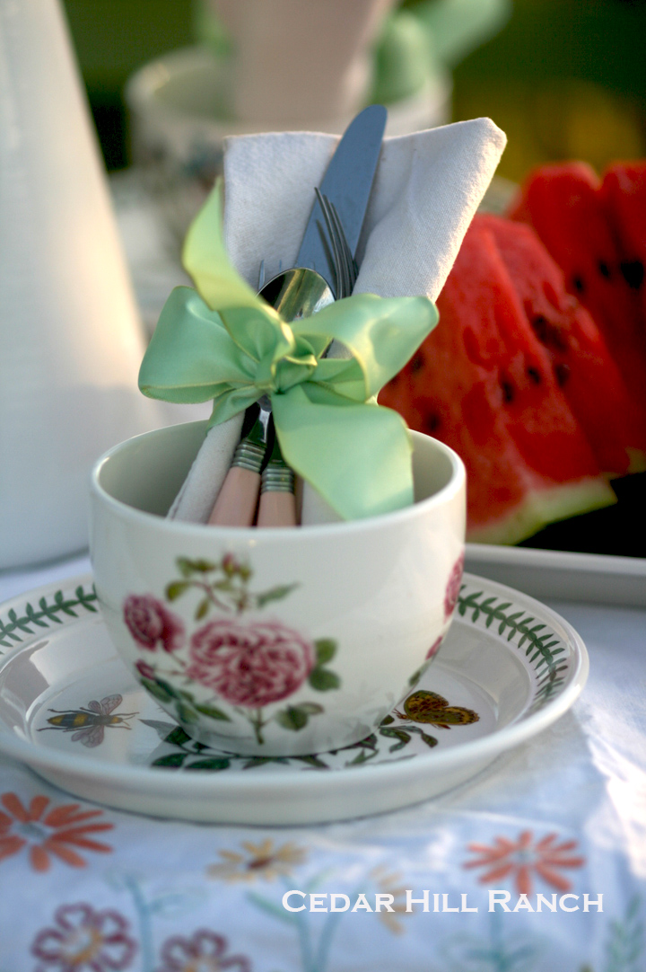 What a lovely spot for a morning or evening repast. Your Portmeirion dishes are a perfect match for the setting.