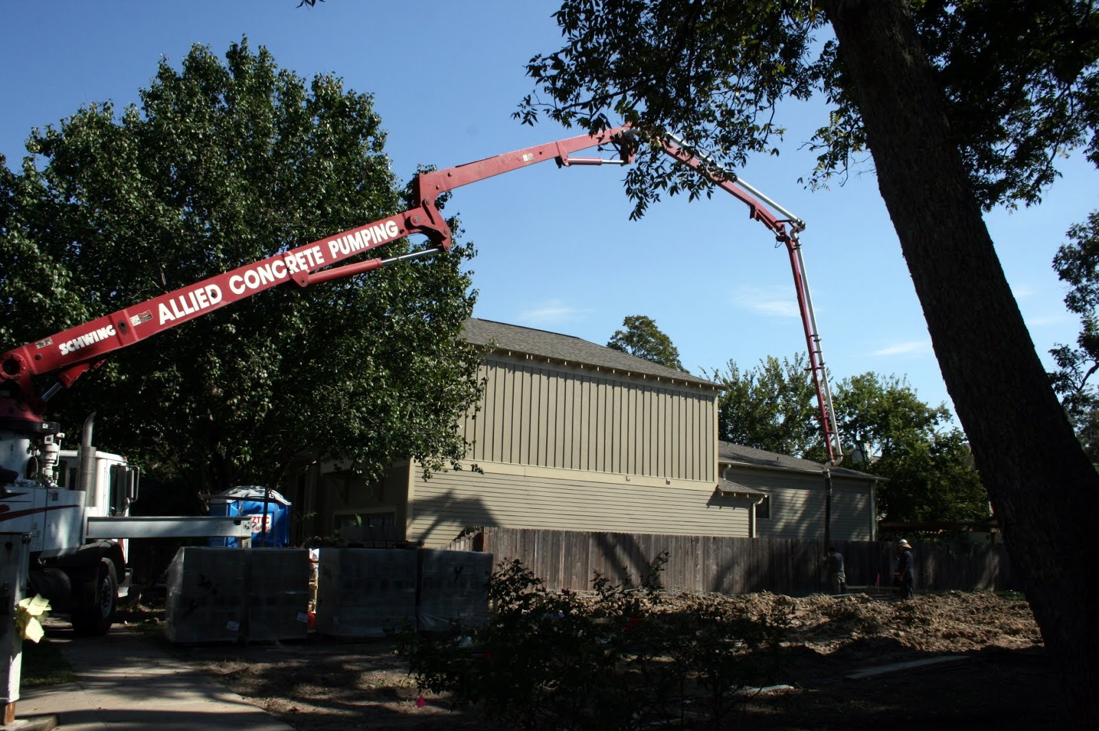 The house has been torn down, the lot has cleared, and the pier and beam foundation is in place.  Here you can see them drilling the holes for our pier and beam foundation.  I know other parts of the country have basements but here is Texas, it’s just not done.  There are several reasons for the no basement rule here, but certainly one of the main reason is  that eventually they turn into indoor swimming pools, but not the kind that you would want to swim in.