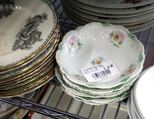 (As a side note, I have to say that I am so happy to be a part of blogland, where owning hundreds of dishes is normal.  Yay!!)  I took you along for a trip to the auction, click here, and now I want to take you to the thrift shop.