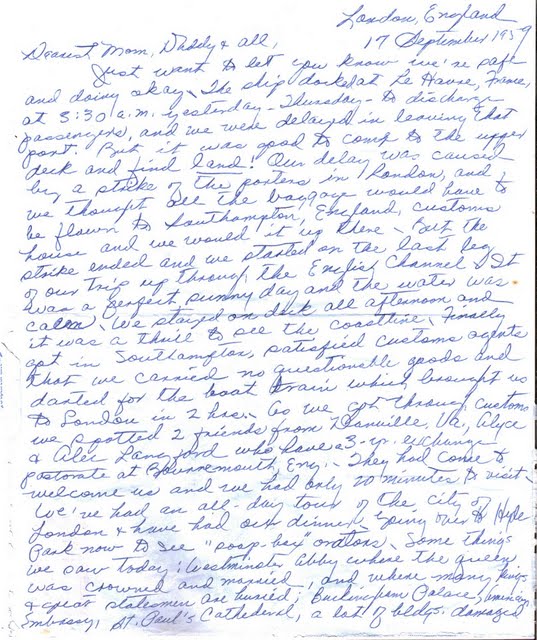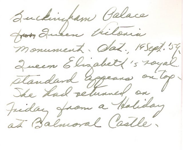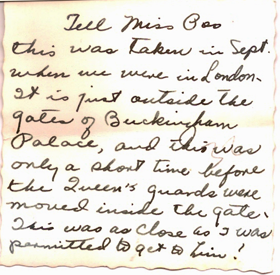 In case you didn’t read the letter, it talks about how ready my MIL was to get off of the ship, and a little bit about their brief stop in London. Here are a few photos they took while in London, and I was very excited to find one of my MIL in front of Buckingham Palace.