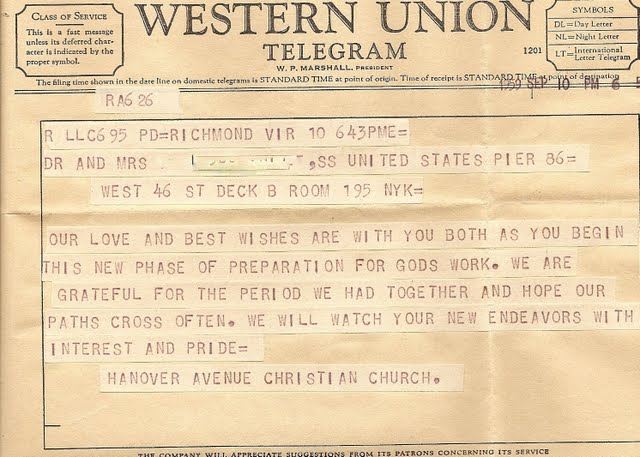 I also found many telegrams wishing the couple “bon voyage” that were sent to them while they were on board. This must have been so exciting for them. Here is a a copy of one of those telegrams.