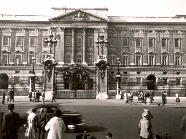 In case you didn’t read the letter, it talks about how ready my MIL was to get off of the ship, and a little bit about their brief stop in London. Here are a few photos they took while in London, and I was very excited to find one of my MIL in front of Buckingham Palace.