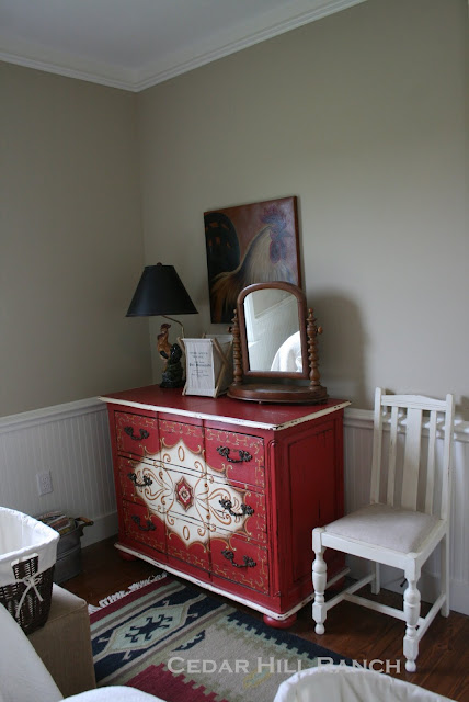 Wow…huge difference and adorable room! Your red dresser definitely wants center stage…and she’s got it!